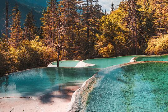 第二天:前往日则沟,这里有长海、五花海、珍珠滩瀑布等著名景点。您可以选择乘坐观光车到达五花海,然后步行游览至珍珠滩瀑布。