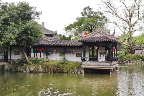 1、中山詹园。詹园位于中山市南区北台村,分为詹园祝寿、岐江廊桥、詹府种福三个区域。园建筑以苏杭园林为基调,综合中国古典园林之精髓,强调岭南水乡的布局脉络,结构简洁而凝重,风格古朴而洒脱。詹园建筑结构简洁而凝重,它的取材多为民间古旧材料,一砖一瓦、一门一窗都凝聚着历史的痕迹。同时还吸收了西式园林的风格,水体和装修多呈几何形式;庭园潇洒,层次分明,建筑重视选址,造型洗练简洁。