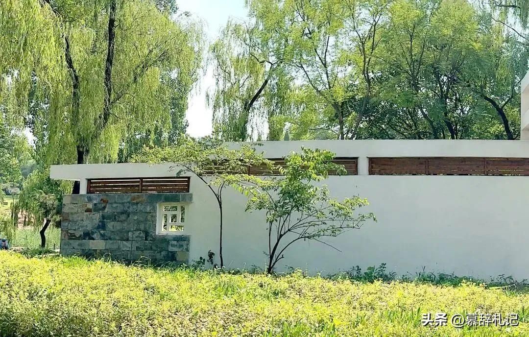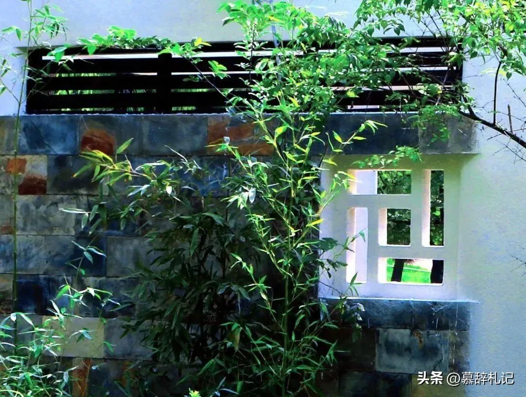 继续向里走,自然石铺砌的石墙与现代简约的白墙相互融合,为栌轩增添了一种独特的美感,透过白色古典花窗可隐约看到窗外景物,似通还隔,若隐若现。它们共同构成了一个富有层次感和艺术氛围的空间,让人们在这里感受到传统与现代的碰撞与融合。