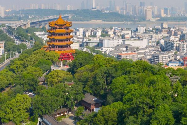 黄鹤楼,位于湖北省武汉市武昌区,地处蛇山之巅,濒临万里长江,为武汉市地标建筑。始建于三国吴黄武二年,历代屡加重修,现存建筑以清代同治楼为原型设计,重建于1985年。因唐代诗人崔颢登楼所题《黄鹤楼》一诗而名扬四海。自古有天下绝景之美誉。