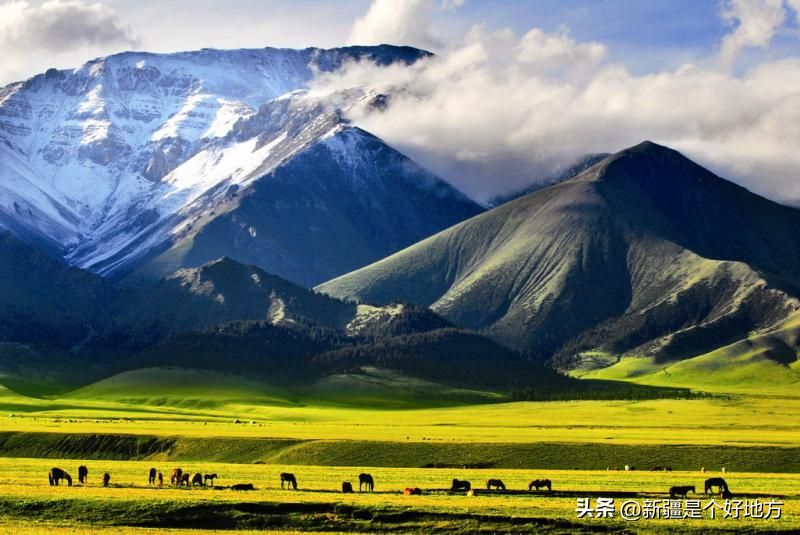 草原有我国最大的高山草原巴音布鲁克,堪比瑞士风光的空中草原那拉提,世界最高最大的旱地麦田江布拉克;