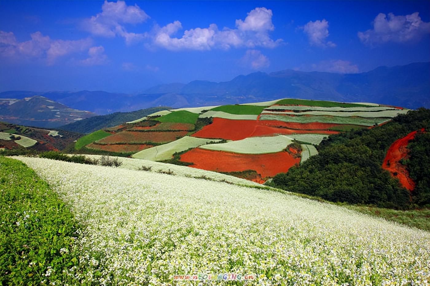 2、东川红土地:最佳游玩时间:9-10月,此时的东川红土地是色彩最多的时候;