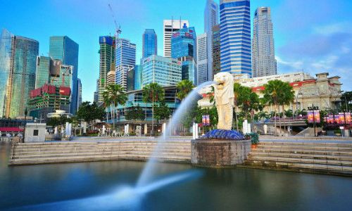 鱼尾狮像坐落于市内新加坡河畔,是新加坡的标志和象征。该塑像高8米,重40吨,狮子口中喷出一股清水,是由雕刻家林南先生和他的两个孩子共同雕塑的,于1972年5月完成。