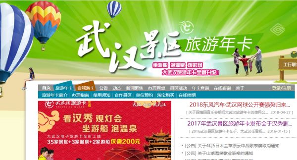 参考资料:武汉旅游官网—2017年武汉景区旅游年卡