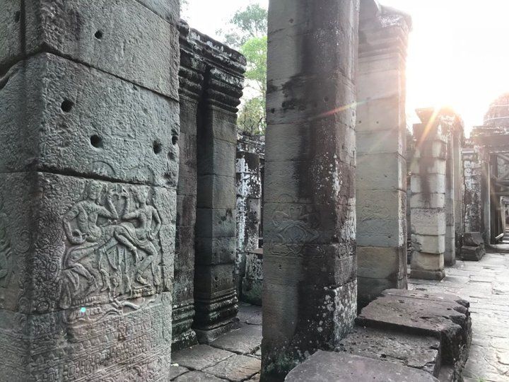 班蒂喀黛是一间佛教寺庙,这里供奉了一尊佛像,佛像的背后放了一个轮子,象徵光明与轮迴。经过佛像后便能抵达跳舞大厅,一根根的石柱上刻了许多跳舞仙女 Apsara,生动的仙女们为这些残破的石柱增添了几分色彩!