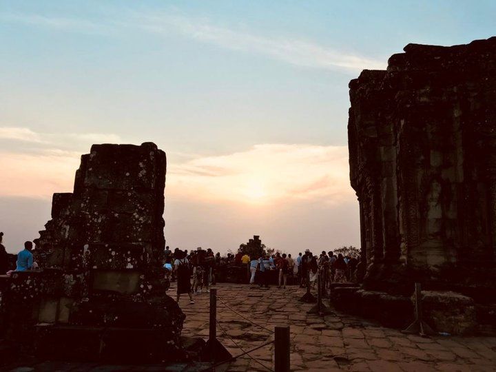 巴肯山是看吴哥窟日落相当有名的地点,山顶的巴肯寺是供奉湿婆神的寺庙,周围共有 108 座宝塔,每座宝塔都是舍利塔用来存放祖宗的骨灰。