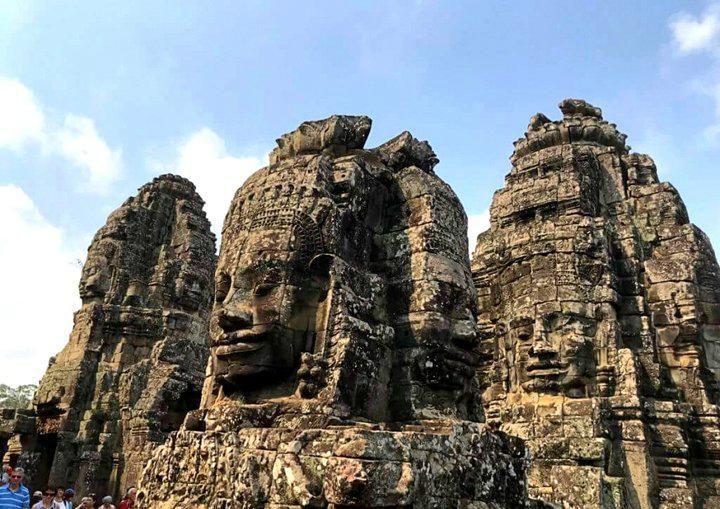巴扬寺是吴哥古迹群中唯一一座大乘佛教寺庙,也是高棉帝国最后一座国庙。这座寺庙最有名的就是每座佛塔上都刻有「微笑的四面佛」,四个面分別代表慈、悲、喜、舍。全寺共有 49 座四面佛塔,加上大吴哥城门上的 5座,总共是 54 座,代表阇耶跋摩七世统治高棉帝国时的 54 个省份。