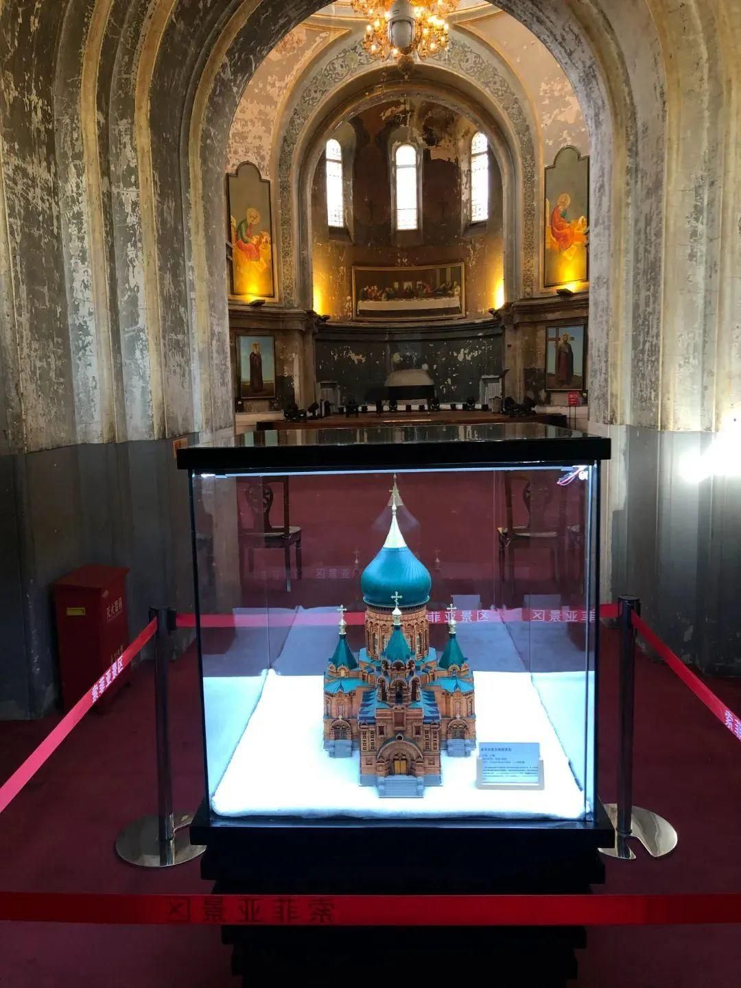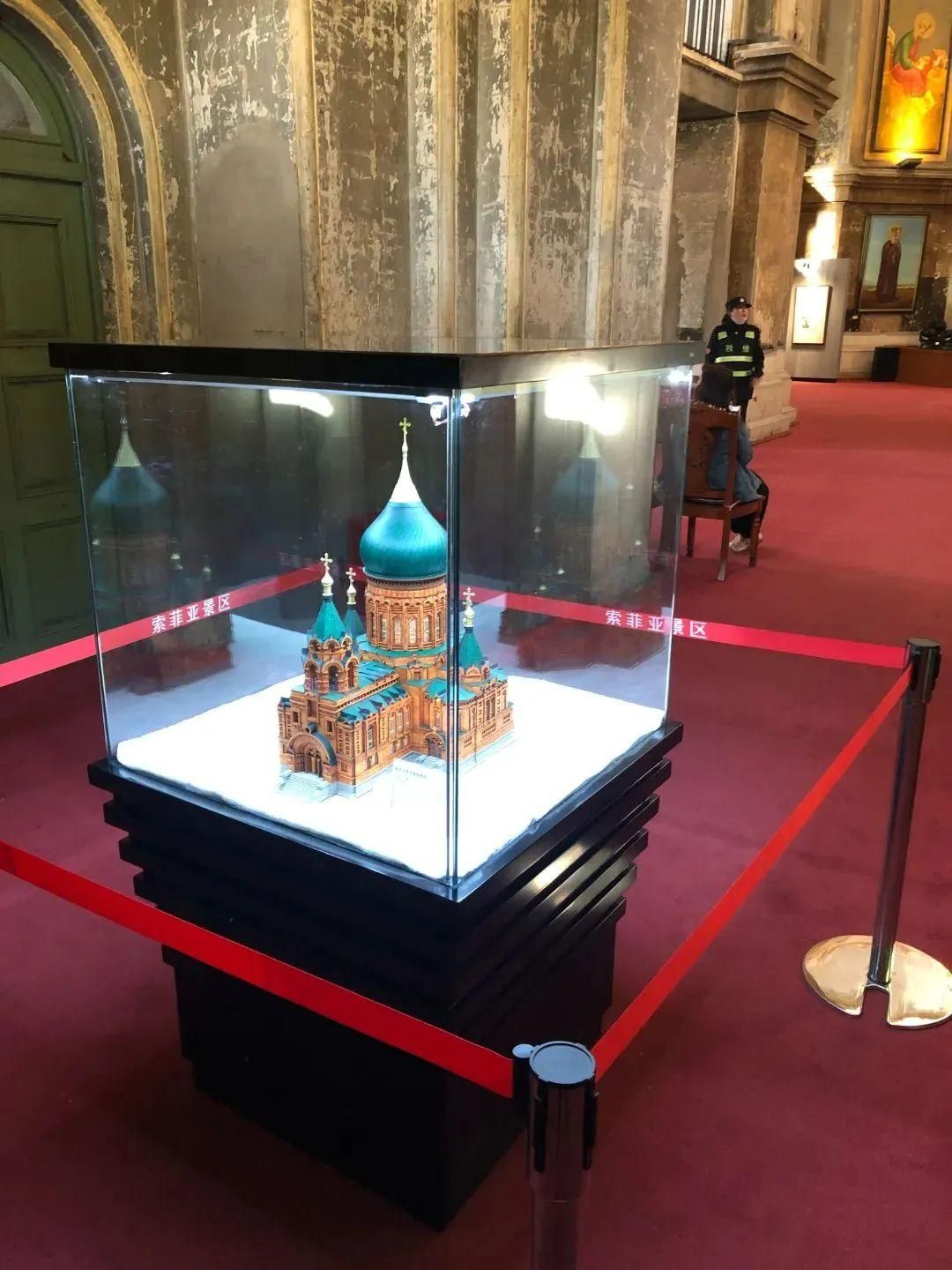 在索菲亚教堂内一个微缩景观建筑模型吸引了不少游客的驻足观赏,微缩版的索菲亚教堂全部按照1:100的比例缩小后原样再现。