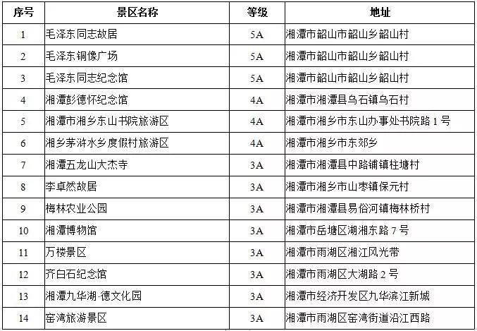 湘潭市首道门票免费景区名单
