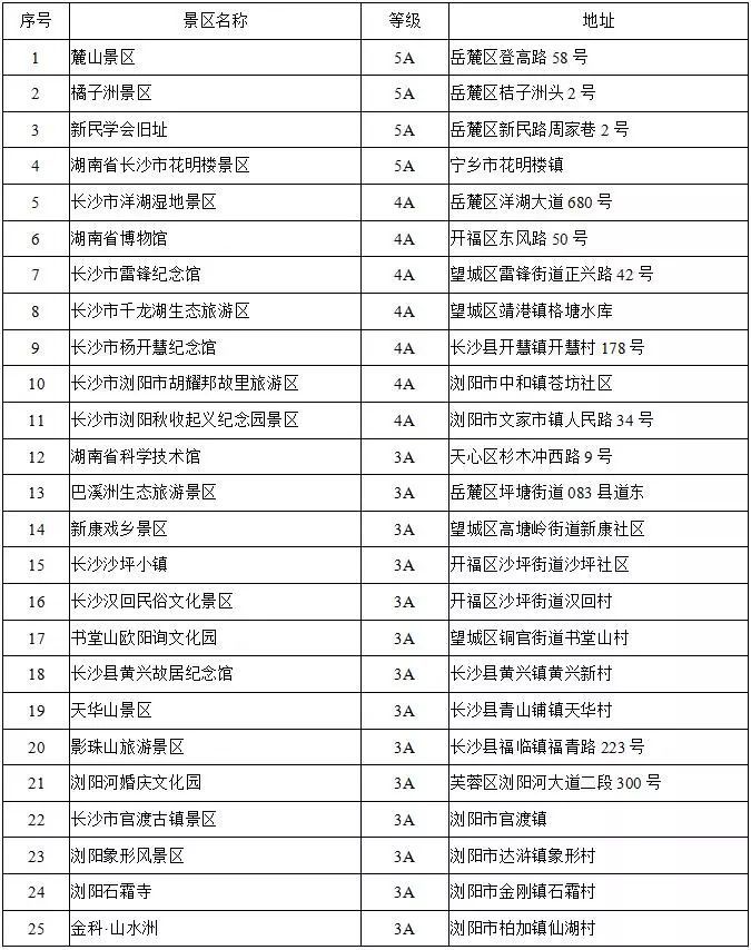 长沙市首道门票免费景区名单