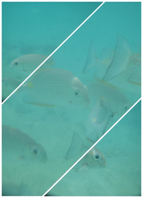 让自己平静了一下,拔掉呼吸管放完水,暂且先不用呼吸管了,一、二、三,离开了浮桥。踩水,然后游一会儿,然后再踩水,往有鱼出现的地方费力的前进着。出发前刚看过有关浮潜事故的报道,先前以为是当事人一意孤行,不穿救生衣的缘故,实践发现,浮潜确实不是想象的这么简单:救生衣有浮力,海水也有一定浮力,游泳技术一般的话反而很容易失去平衡,感觉就象水里的一片树叶,被推来搡去的,加上海浪很容易会进入呼吸管,如果这个时候惊慌失措,很容易会将海水吸入而窒息。