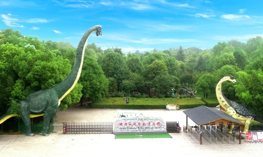 西峡恐龙遗迹园。大型恐龙主题公园,位于秦岭山脉东段。位于河南省南阳市西峡县三里庙村。主要由地质广场恐龙蛋化石博物馆、恐龙蛋遗址和仿真恐龙原始部分组成。西峡出土的恐龙蛋化石数量大,种类多,分布之广,堪称世界之最。园中有观光车可坐,还有不少游乐设施和仿真恐龙模型。