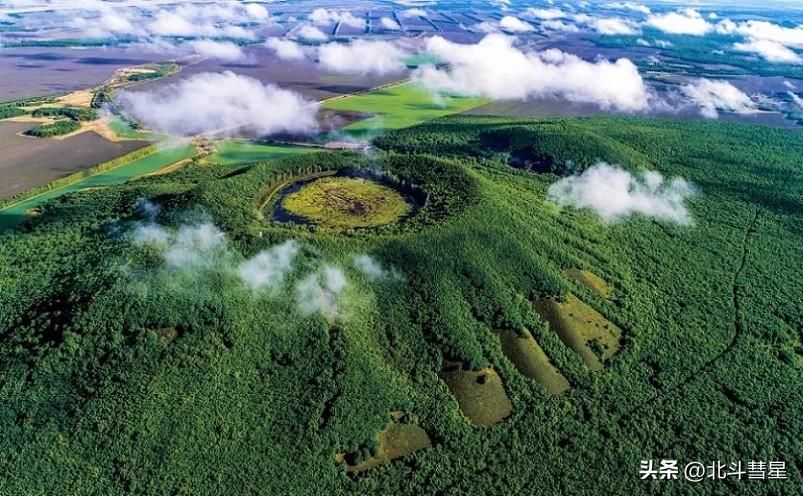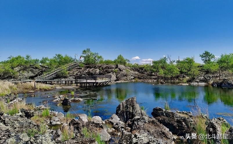锥形火山,浩瀚熔岩,潺潺清泉,如镜湖泊,组成了波澜壮阔的五大连池。山川相映,水火相融,宛若镶嵌在欧亚大陆桥上的一颗璀璨明珠。