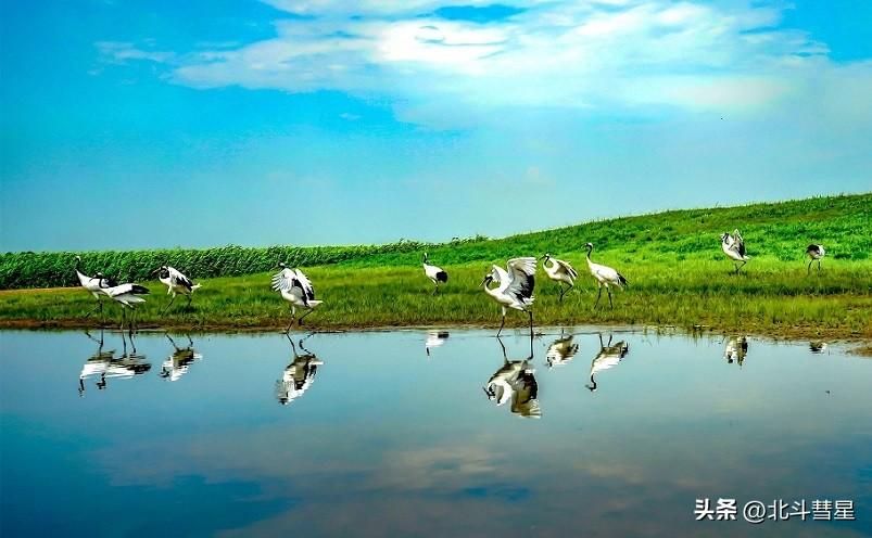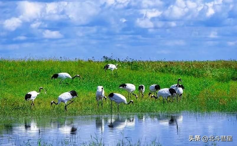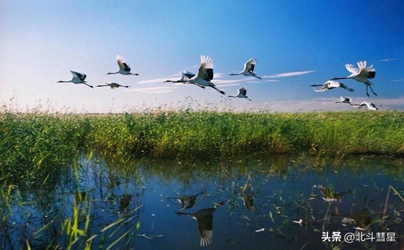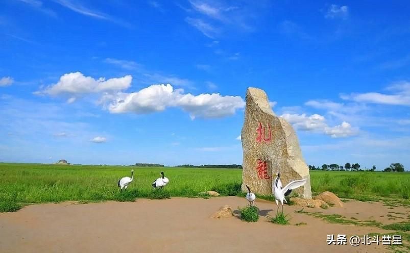 扎龙湿地,湖泊星罗棋布,河道纵横,水质清澈,苇草肥美,以鹤类等珍稀水禽为主,是世界上最大的丹顶鹤栖息地,被誉为候鸟和水禽的“天然乐园”,素有“鹤的故乡”之美誉。