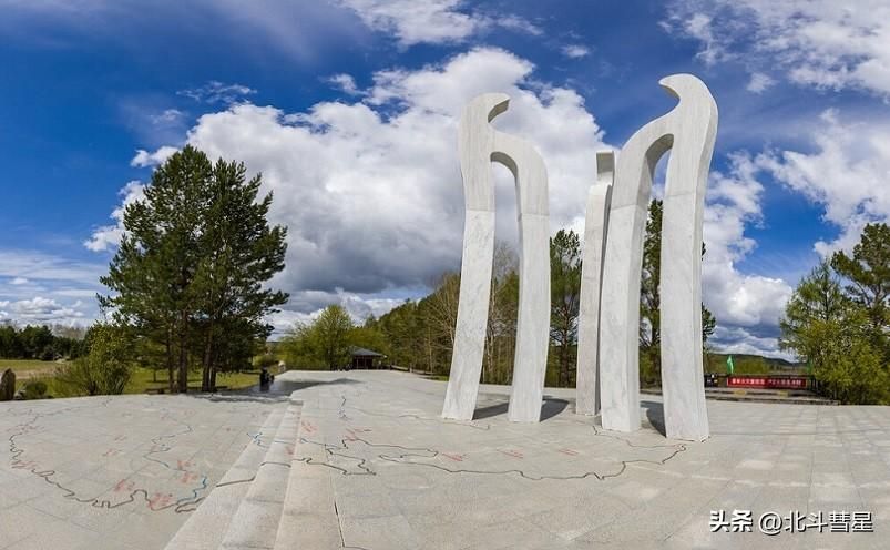 在村里最引人注目的就是北望垭口广场,屹立着“北”字雕塑,取自于清代书法家邓石如的小篆体“北”字。雕塑材质为青白玉石,呈三面合围状设计,具有全方位见到“北”字视觉效果。同时,基座上还刻有北极村至全国各省会、直辖市、行政区的纬度和距离。