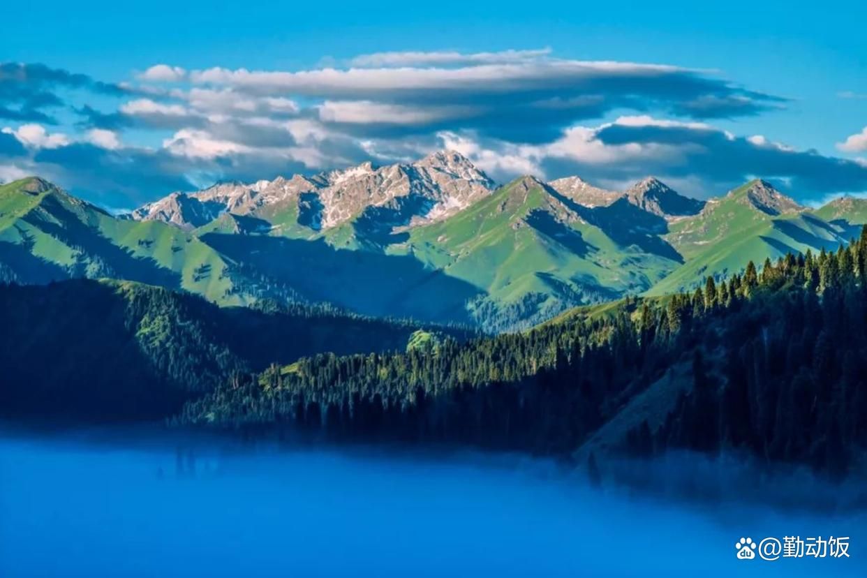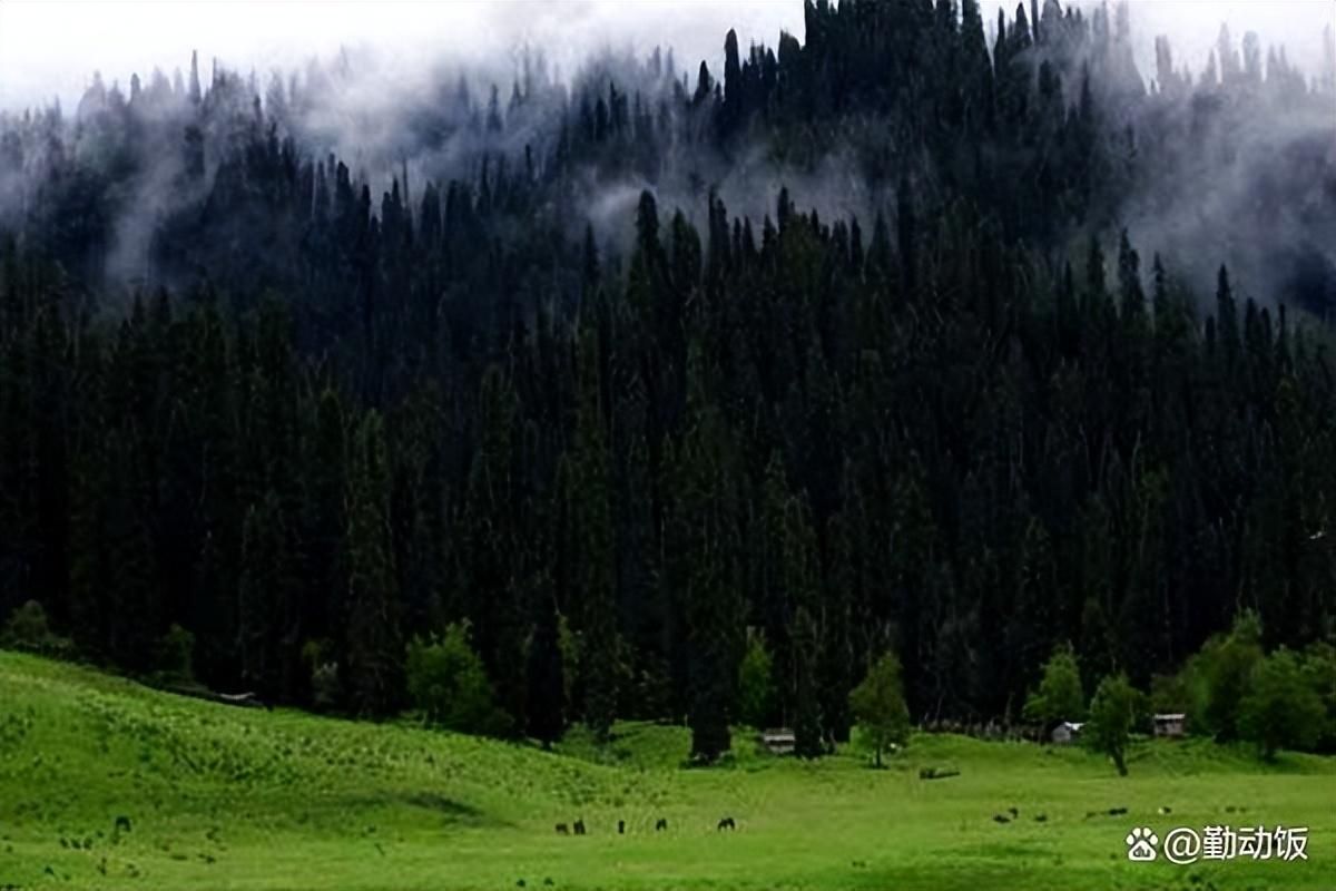 库尔德宁,位于巩留县东部的群山之中,距离县城88公里,仿佛是人间仙境。谷底平均海拔高达1500米,而与众不同的是,这里山沟的走向与雪山平行,打破了常规的山势走势。这里的山峦苍翠欲滴,草原上的绿草茵茵。远眺,皑皑雪山映入眼帘,近观,林海波澜壮阔。这里的景色之美,简直无法用言语形容,只有身临其境,才能真正领略到那份不可言状的美妙。