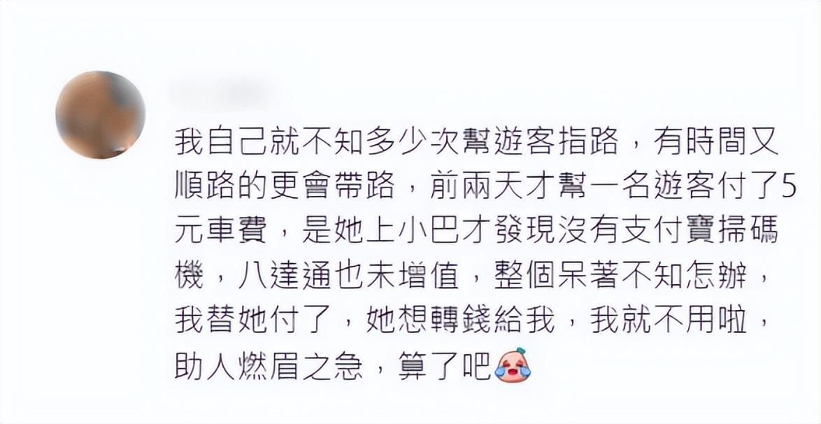 此外,更有港人分享他平日也会经常帮助旅客,为他们指路,若时间允许又顺路的话,亦会带路到目的地,内地男就回复指,“就因为你这样助人为乐的行为,才让旅客感到温暖”。