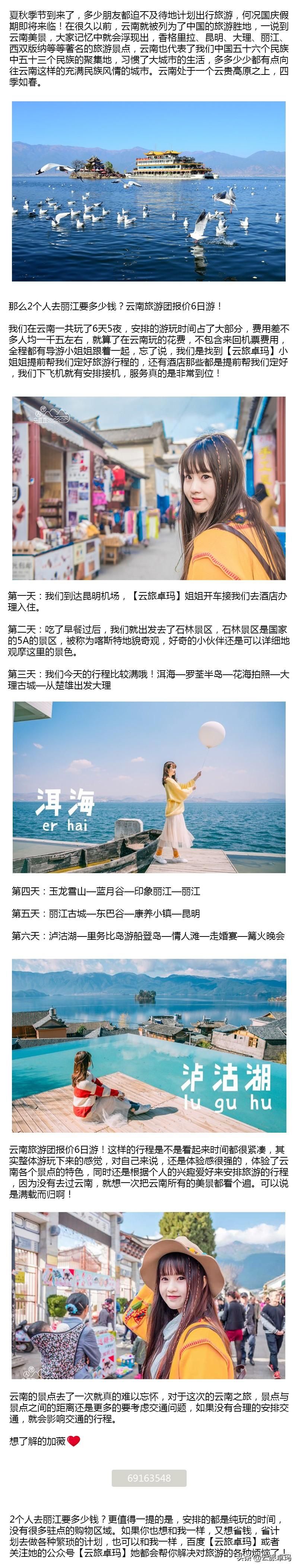 云旅卓玛全程来回接送,安排好酒店和门票,云南旅游七天的费用才一千多,云旅卓玛与各景点和酒店都有合作,拿到的价格是最实惠的,所以跟团的费用也是最优惠的,只为了能给你们提供最优质的服务。