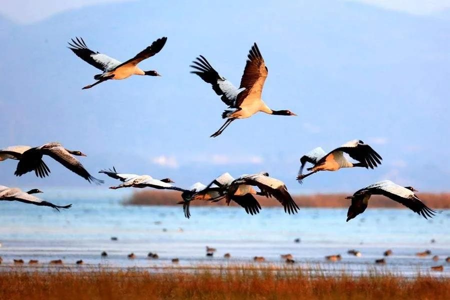 也正是由于水草众多,气候适宜,它的整体生态环境非常的好,形成了独特的高原湿地生态系统。所以也引来了大批的候鸟,这里也成了西南地区最大的候鸟迁居地以及观景地。