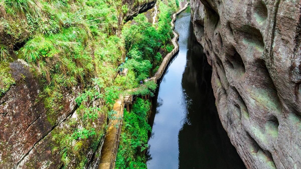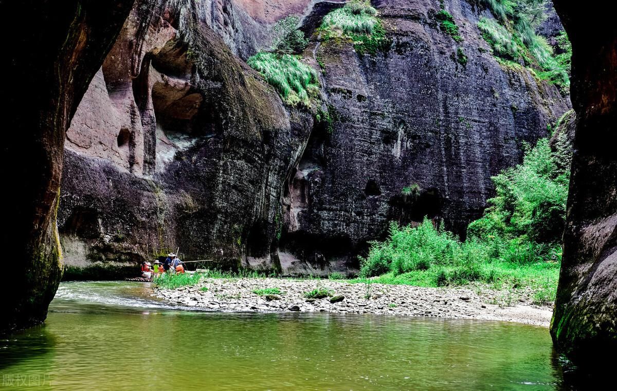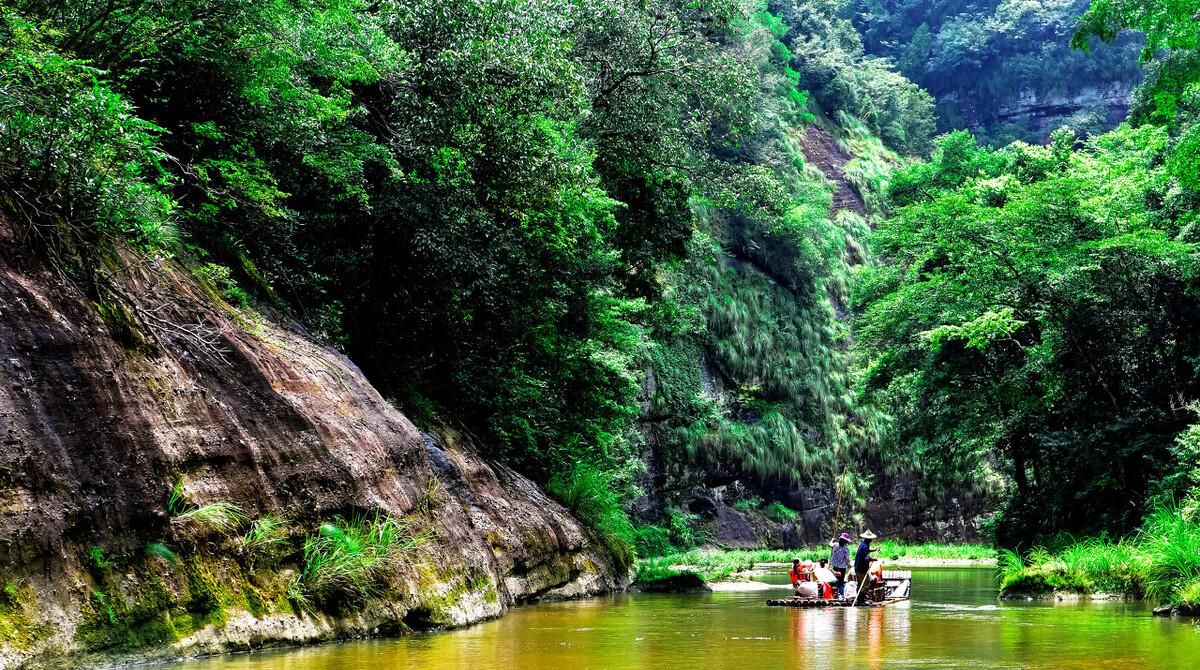 上清溪,清秀如画,清澈的河流弯绕曲回,可与武陵源金鞭溪相媲美,乘一叶扁舟顺流而下,在青山碧水中,探索原始质朴的丹霞沟谷群,欣赏山峦青葱、溪水澄亮的美景,呼吸清新的空气,放松身心。