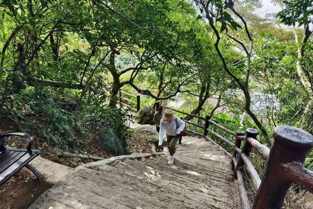 伏波古道全长约899米,共有999级台阶。传说当年伏波将军马援因遇风暴在铜鼓岭临时屯军,为方便当地村民上山获取猎物而专修此道。