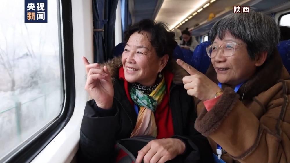 陕西:“银发冰雪游”旅游专列 坐着火车去看雪
