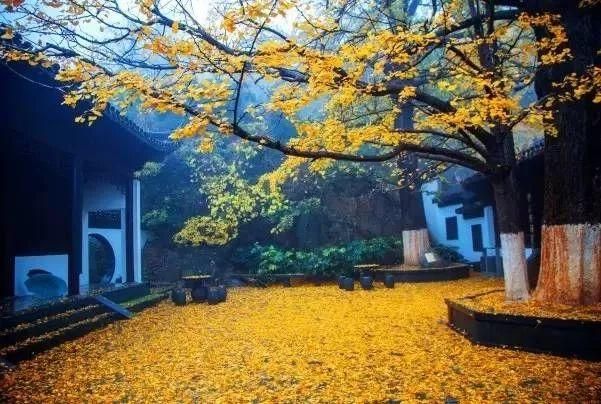 树下落叶铺成长长金色地毯,美得那样纯粹那样浪漫。
