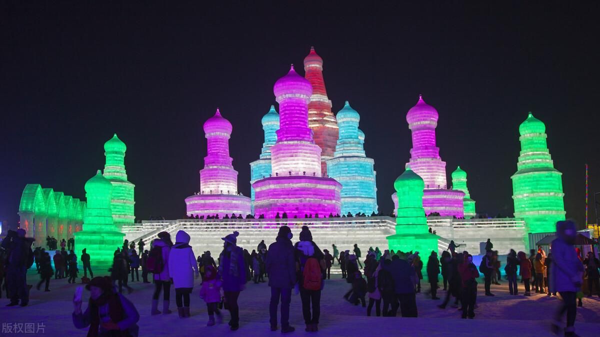 当然最不可错过的就是哈尔滨冰雪大世界,今年哈尔滨冰雪大世界将会更加美轮美奂,以冬奥文化为核心,以冰雪为载体,多维度展现冬奥文化,融合了众多中西方建筑艺术元素的冰雪城堡,或浪漫、或梦幻、或绮丽,各具特色、各有风情。一座由冰雪筑造的梦幻之城大家一定不要错过哦~
