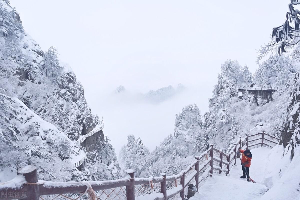 冬日里的海螺沟被白雪覆盖,已是人间至美的冬雪仙境!寂静的山谷成了琼楼玉宇,险峻的冰桥成了鹊桥仙境,宛若一派“冬季恋歌”的景象!