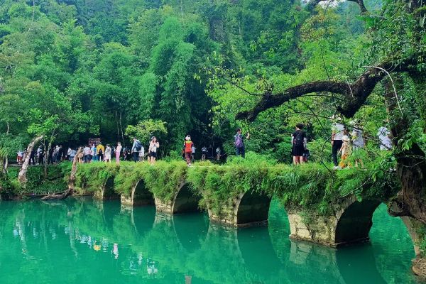 七小拱门景区位于荔波县城南30多公里的群峰之中。因有一座青石七孔拱桥横跨响水河而得名。景区集山、水、林、洞、湖、瀑于一体。它美丽而宁静,有着浓郁的土家族和瑶族风情。