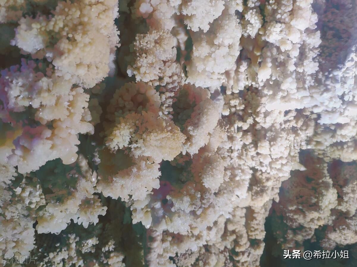 洞内有九个大的洞厅,景观与神话中的天宫有的一拼。洞内的次生化学沉积物非常多,尤其以池塘沉寂和各类石花灯大范围的非重力水沉积名扬天下,“天下第一石花洞”名不虚传。