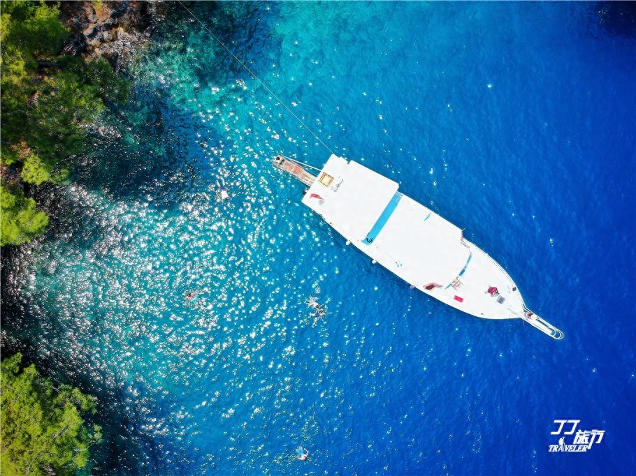 与不会游泳,也能安然漂浮在海面上的“死海”不同的是,土耳其死海的得名来自其的海岸地形,一条狭长的海岸划入宁静的地中海海湾中,将海湾一分为二,内侧的海水由于面积狭窄,如一潭死水波澜不惊,而另一侧则是海浪波涛,形成独特的视觉效果。