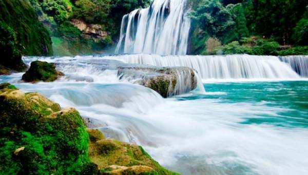 陡坡塘瀑布是黄果树瀑布群里瀑顶最为宽的瀑布,瀑布水沿着瀑面倾泻而下,声势浩大,场面蔚为壮观,令人惊叹。运气好的话还可以看到美丽的彩虹。这里也是86版电视剧《西游记》片尾曲的取景地。