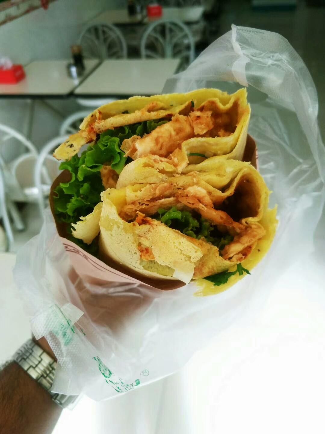早起先来个大煎饼,高配的哈,青岛的味道~