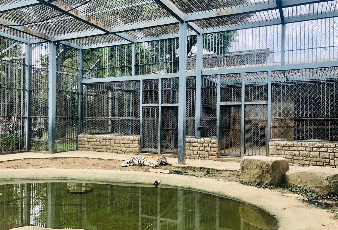 午后,苏州上方山森林动物园的华南虎基地中,老虎在小憩,悠然自得。