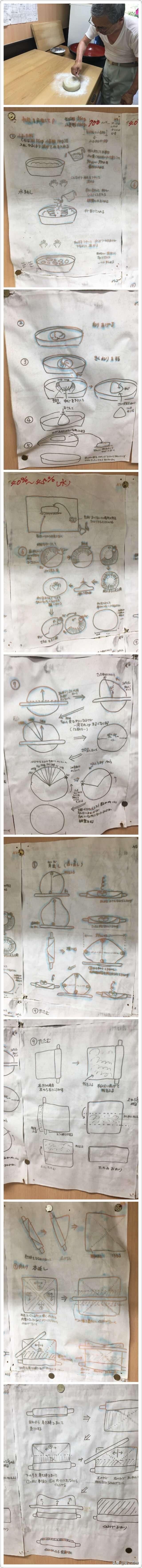 真的是不得不佩服日本人的工匠精神,做个乌冬面,他就能画图写说明,俨然精密仪器说明书。老先生不厌其烦地详细示范,我们也颇有兴趣地学习。