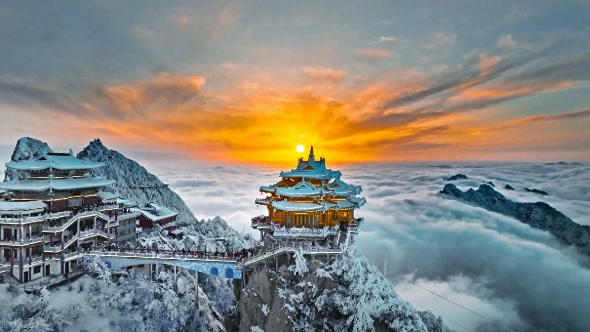 老君山游客中心检票口→一级索道→中天门一十里画屏→南天门→金顶道观群→金顶日落+亮灯→下山。