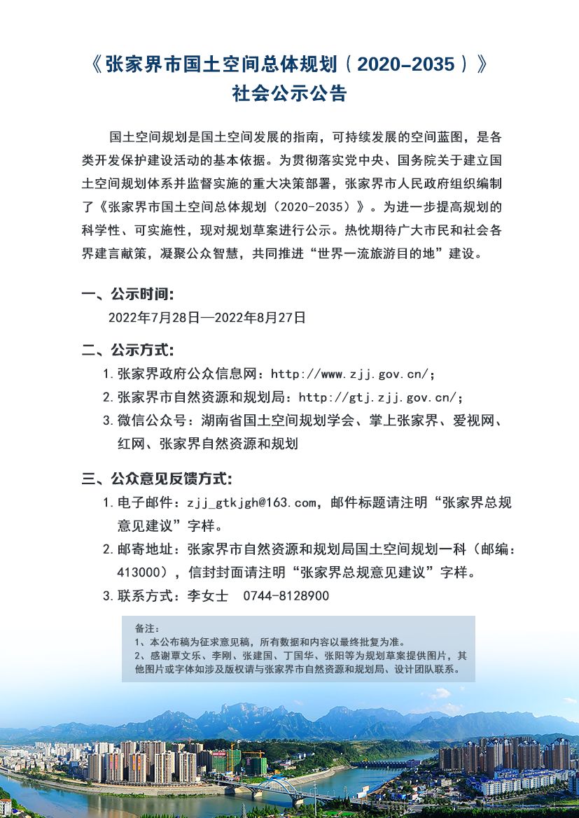 由市政府组织编制的张家界市国土空间总体规划(2020-2035)出炉啦为进一步提高规划的科学性、可实施性请您提建议