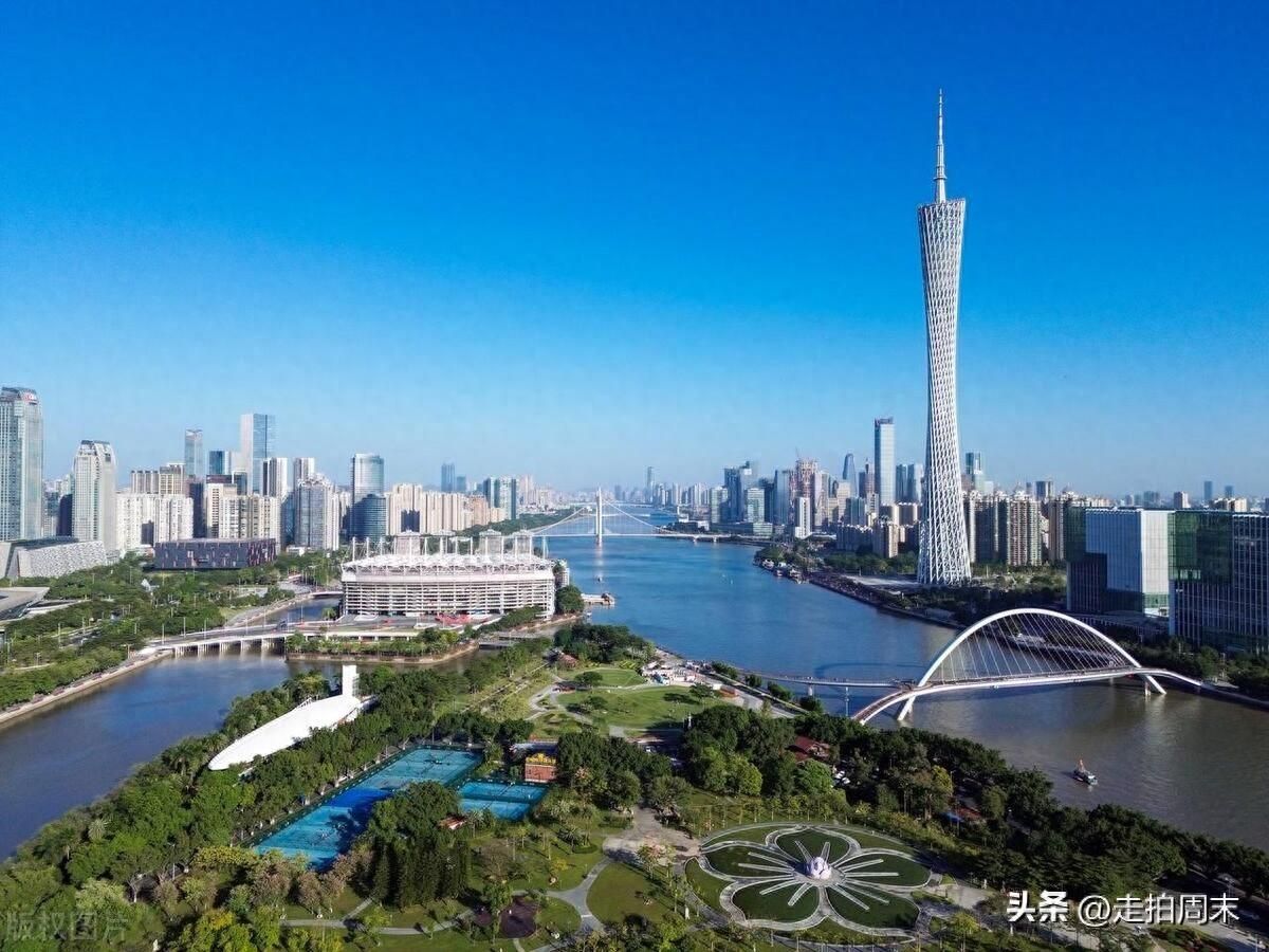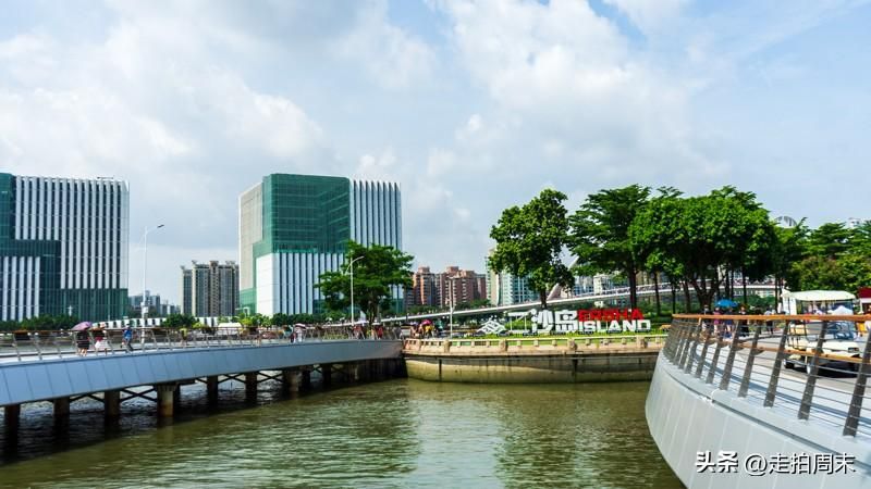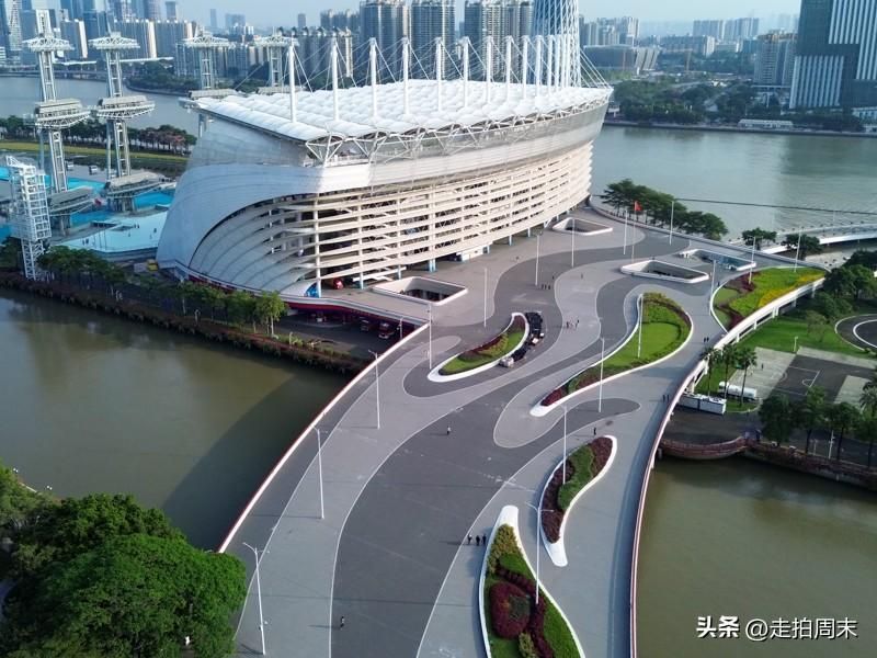 这是二沙岛东包括海心沙的俯瞰图片。左边江上连接珠江新城的小桥及体育馆看台就是海心沙亚运公园了。
