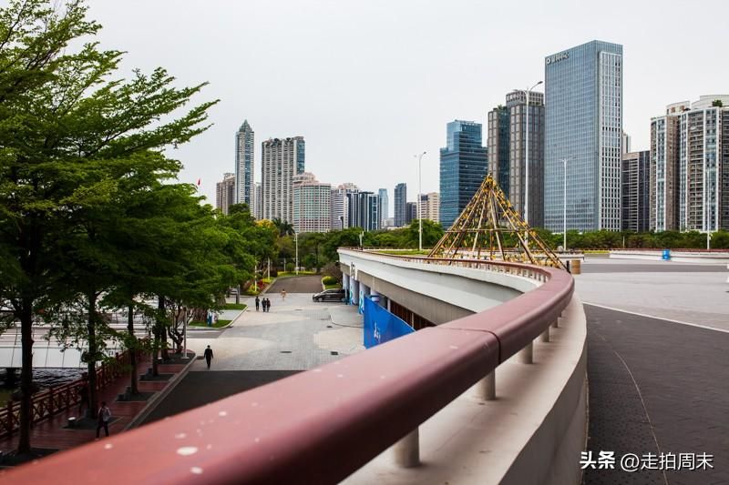 这是广场南边的护栏。这里可以看二沙岛东的景观,看看游人穿梭的热闹景象,夜晚还可以看到海心桥灯光倒影。