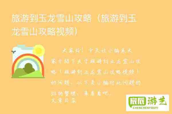 大家好!今天让小编来大家介绍下关于旅游到玉龙雪山攻略(旅游到玉龙雪山攻略视频)的问题,以下是小编对此问题的归纳整理,来看看吧。