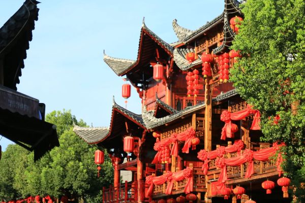 恩施土家女儿城:女儿城是一个集土家族文化展示、民俗体验和旅游购物为一体的综合性旅游景区。这里有土家族的歌舞表演,还有各种手工艺品和特色小吃,是体验民族文化的好地方。