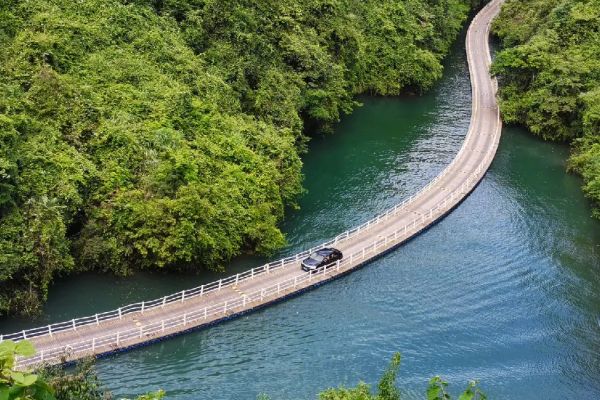 狮子关,位于恩施州宣恩县境内,这里山势险峻,草木丰茂,怪石嶙峋,洞穴神秘,飞瀑流泉,天然山水资源丰富,而最出名的莫过于,这里的水上浮桥—廊桥遗梦,浮桥全长500米,整体呈s型。