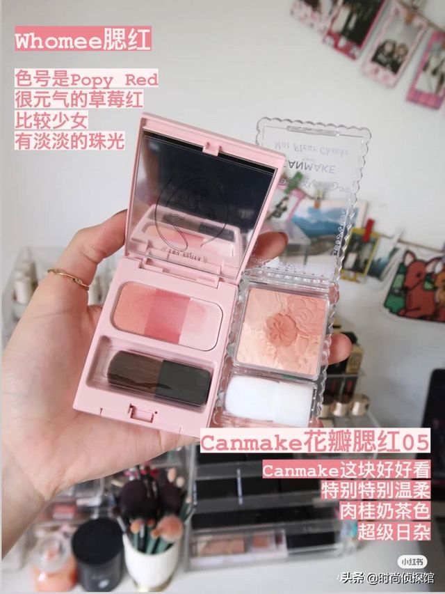 Popy red这块很元气,草莓红,左边的颜色带一点细闪Canmake这块是我今年最常用的奶茶日杂色,特别温柔日常