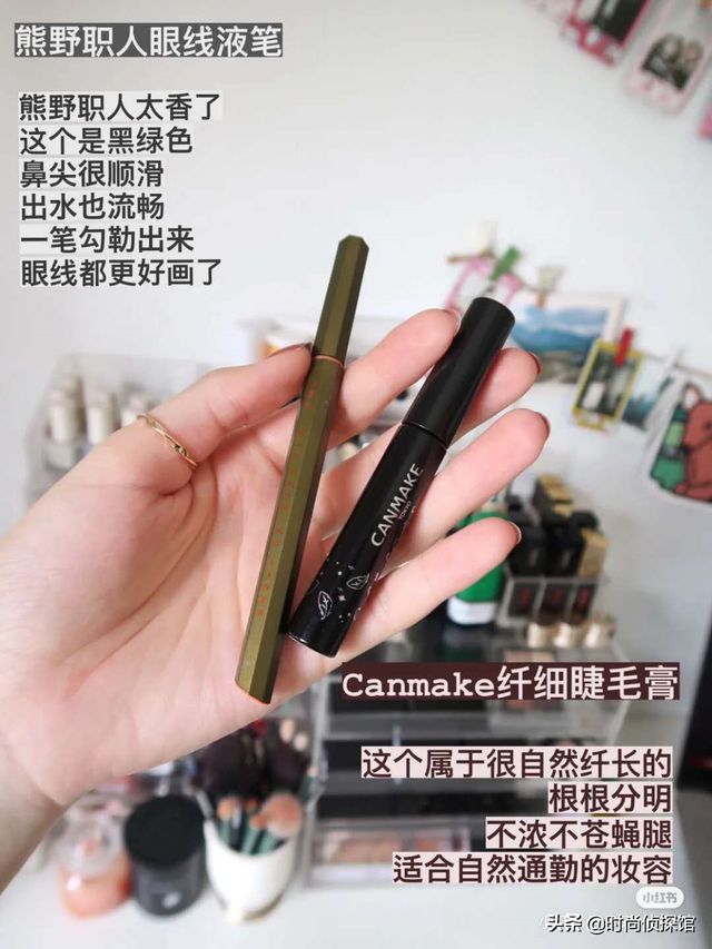 熊野职人真的很好画,特别流畅,画到眼尾可以拉出很自然的尖尖,中间出水也不会断。Canmake这个睫毛膏很自然,刷头很细,适合自然妆,完全不苍蝇腿