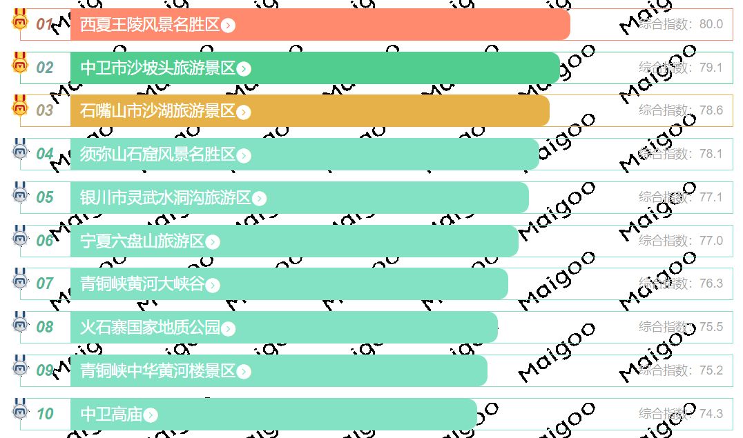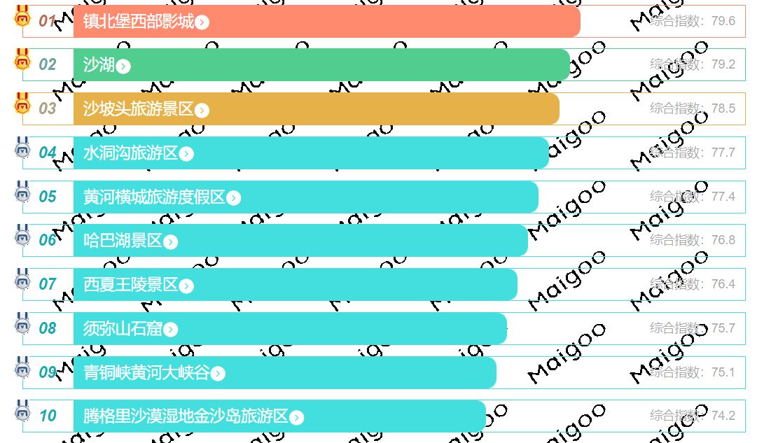 宁夏最好玩的景点位列第一的是镇北堡西部影城,位列第二的是沙湖,位列第三的是沙坡头旅游景区。