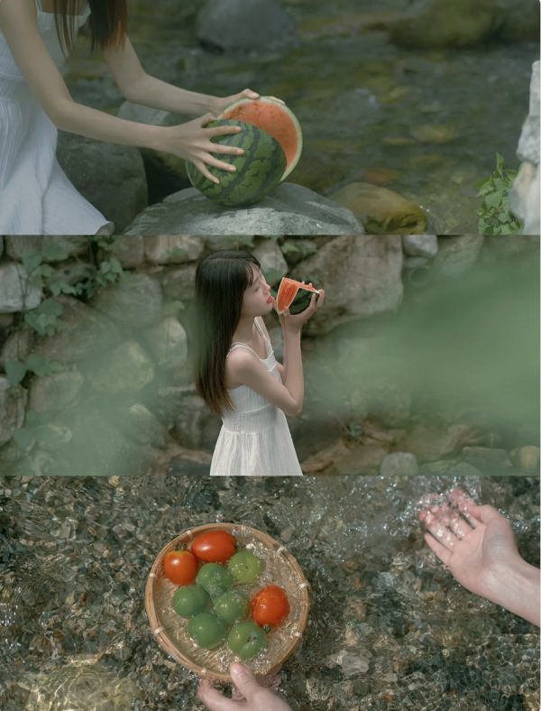 出门旅游也会吃好多好吃的,我们可以充分利用这些食物来丰富照片的画面,提升画面氛围感,如水果、奶茶和甜品等,不仅可以让动作更自然,而且还可以在不同季节,不同的地方,选择对应的食物作为点题,比如夏天选择西瓜就会让照片更元气,更有日系的感觉,轻松塑造照片的氛围感。
