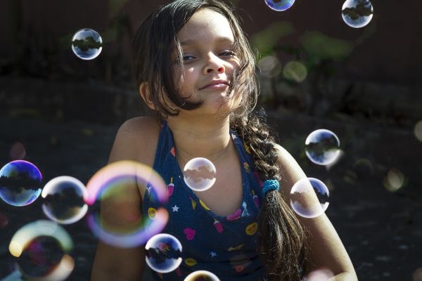 泡泡作为一种道具,它抓不着摸不透,但是却可以让画面充满童真的感觉,也能增加画面的灵动性。我们可以根据根据画面来决定泡泡数量的多寡,而且也可以根据当时的光线,拍出不同色彩的泡泡,它变幻莫测的颜色和形状非常适合表现不同风格和氛围的照片。