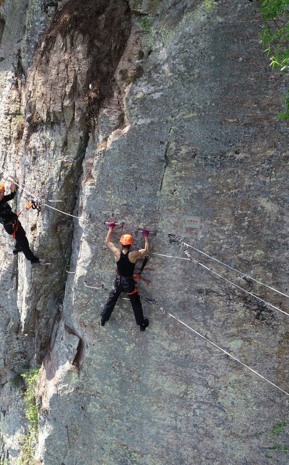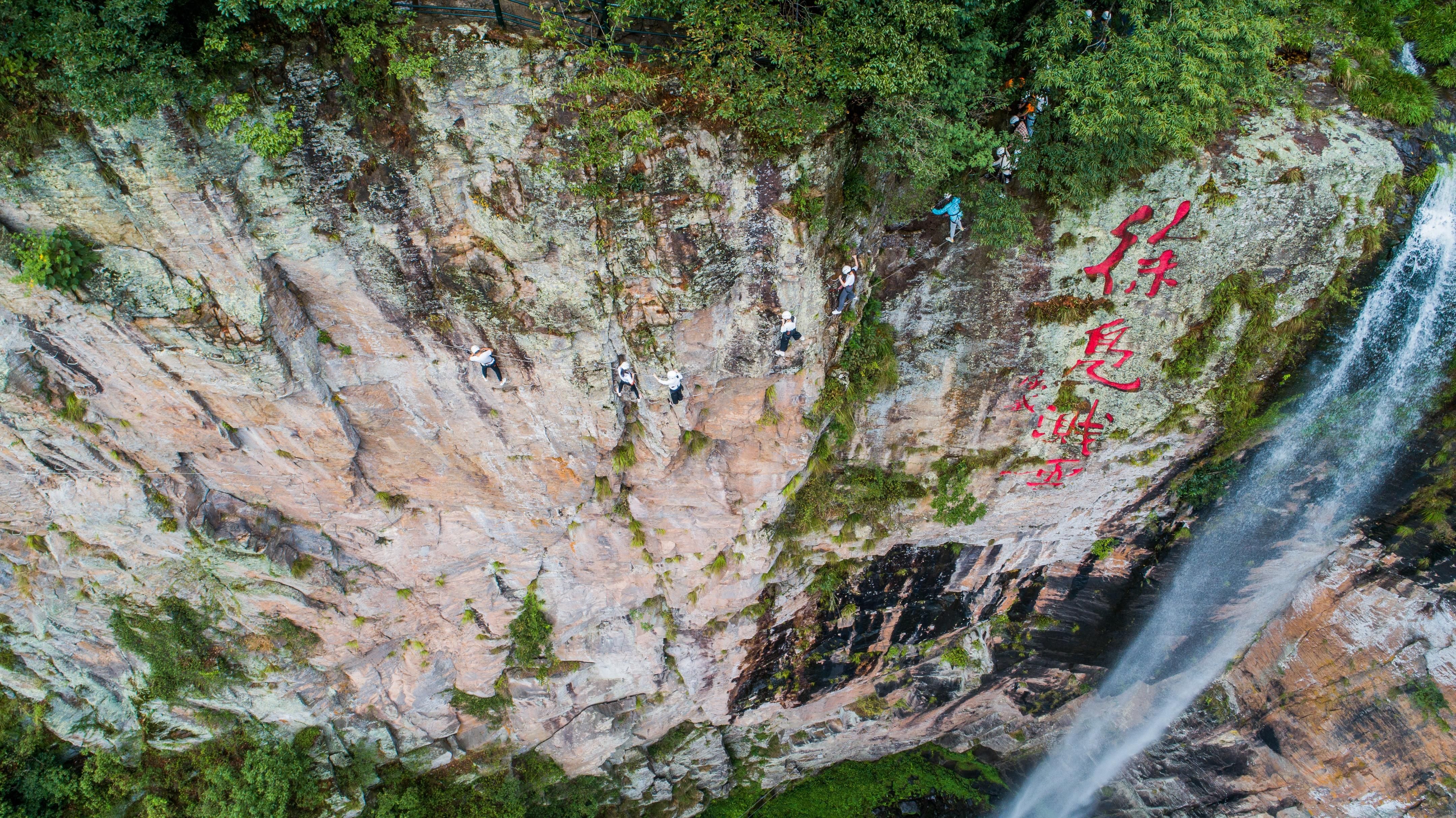 想要体验在悬崖上勇敢的“凌空漫步”吗?徐凫岩的飞拉达满足你的飞檐走步梦,悬挂在崖壁上行走,全程有三道安全锁,只管大步往前走!