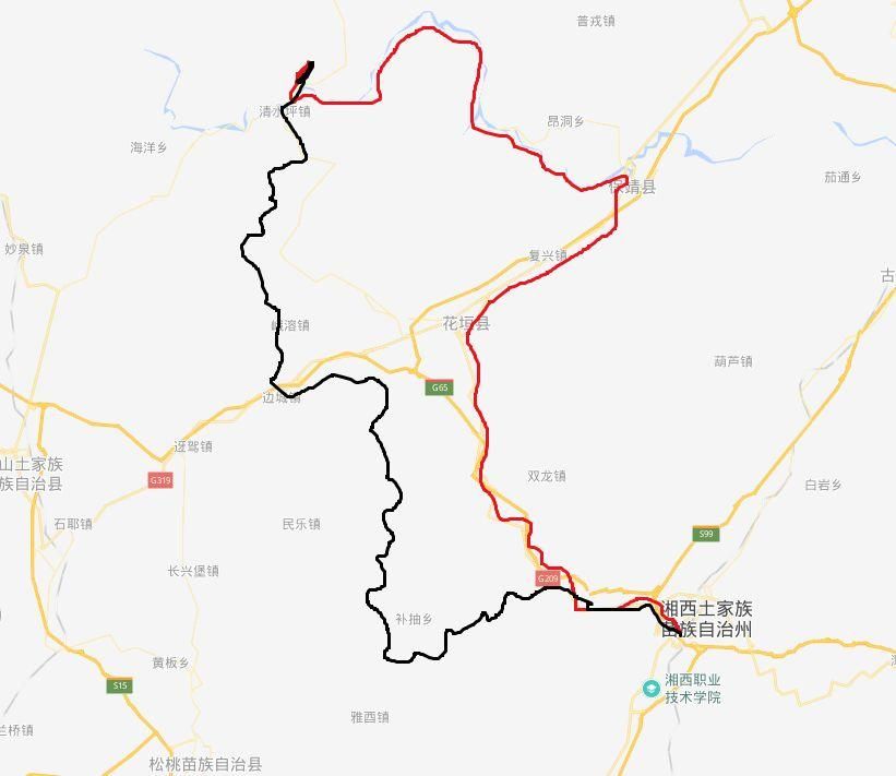 第一天:吉首市—(70KM,209国道)—花垣县城—(25KM,209国道)—保靖县城—(70KM,迁清公路)—里耶古镇—(20KM)—八面山,共185公里左右;